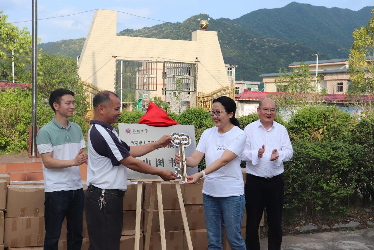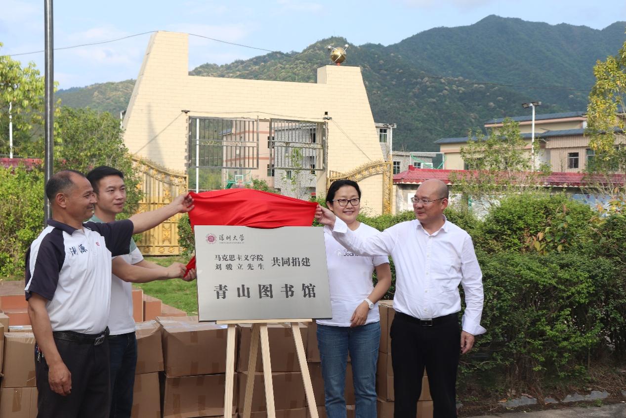 Next, on the square of Shanxia Primary School, under the five-star red flag and amid the spring breeze full of hope, Secretary Wang Hong, Dean Fu Heming, Principal of Shanxia Primary School Huang Jinnong and first secretary Yang Zhenyu at the village, jointly unveiled Qingshan Library and held the key handover and official launch ceremony.