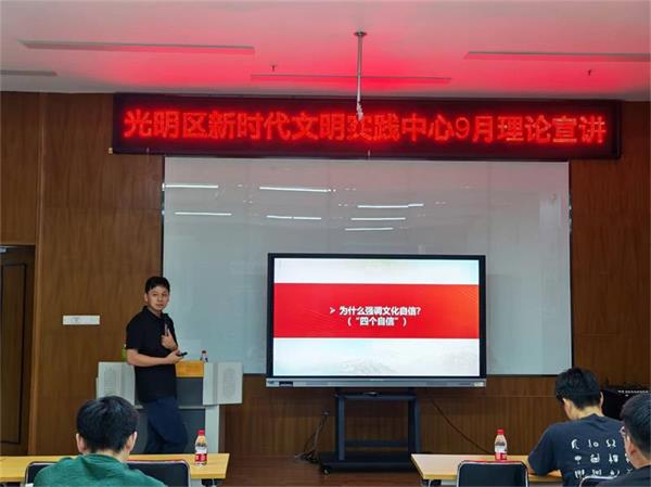 On the afternoon of September 17, Associate Professor Huang Jichao gave a talk titled “Cultural Confidence in the New Era” at the Guangming District New Era Civilization Practice Center.