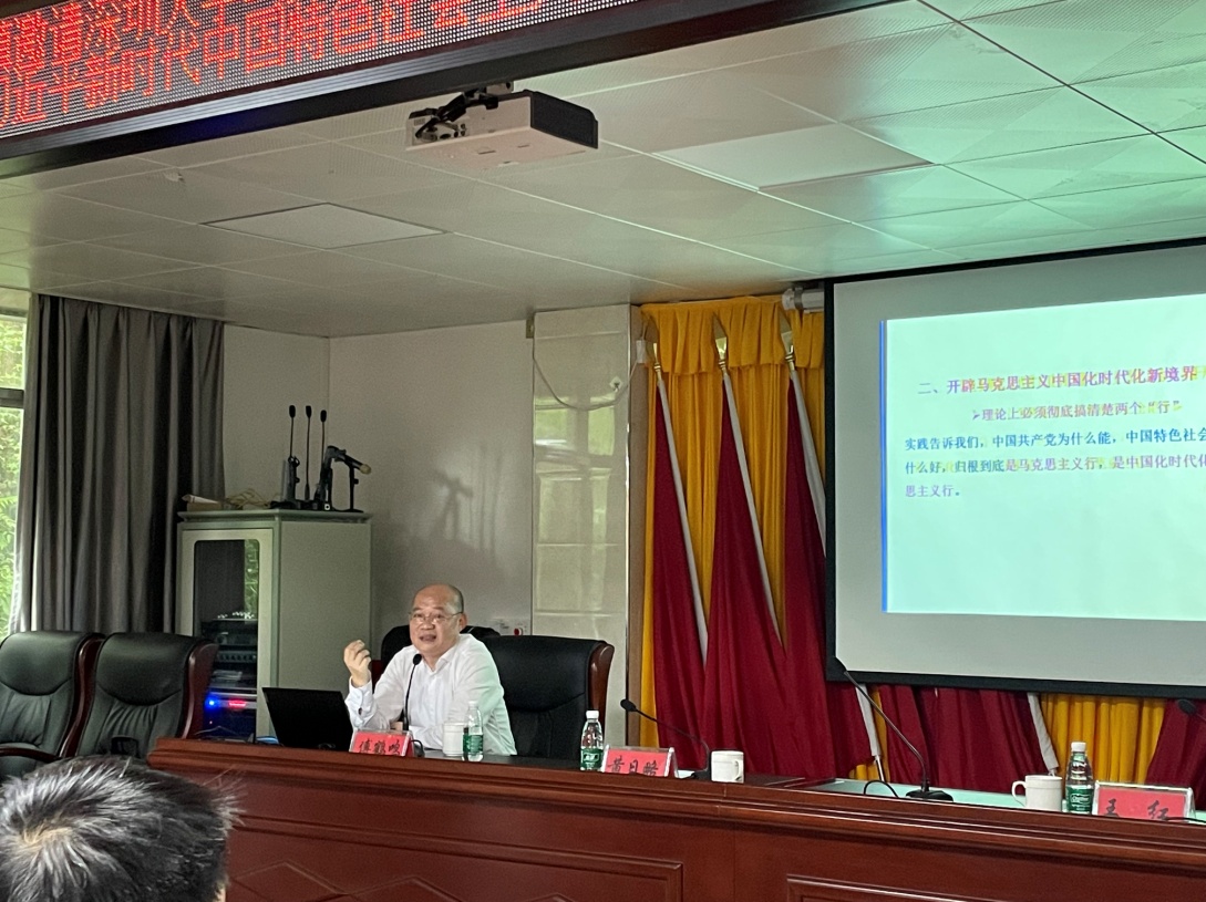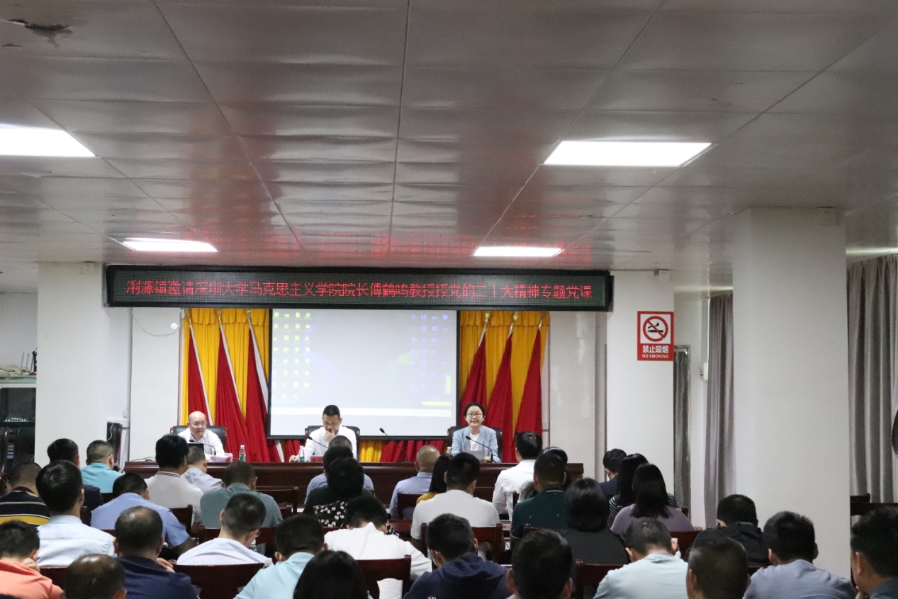 为深入开展学习贯彻习近平新时代中国特色社会主义思想主题教育,全面贯彻党的二十大精神,深圳大学马克思主义学院党委充分发挥发挥理论专业优势,主动送课上门,深入乡镇开展主题教育专题党课宣讲活动。4月20日下午,学习贯彻习近平新时代中国特色社会主义思想主题教育党课在浰源镇政府礼堂开讲,浰源镇党委书记黄日略主持会议并动员部署,学校党委常委、马克思主义学院党委书记王红出席并讲话,学院院长傅鹤鸣讲授党课,深圳市驻浰源乡村振兴工作队、浰源镇及下属各村党员干部和马院党员师生100人余参加。