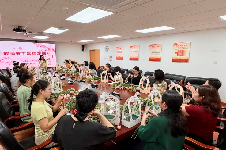 学院精心举办了丰富的教师节文化活动,致敬辛勤耕耘、坚守初心的全体教师。集体生日会情谊浓,凝心聚力暖人心。王红书记、刘志院长为集体生日会切生日蛋糕,并向辛勤耕耘在教学、科研、管理一线的教师致以节日的祝福,表达真挚的敬意和衷心的感谢。温馨的氛围让老师们倍感大家庭温暖,增强了老师们的归属感和凝聚力。主题插花活动以花为媒陶冶情操,凝聚力量。活动现场,花香馥郁、欢声笑语不断,其乐融融。老师们在艺术创作中舒缓了压力,放松了身心,度过了一个充满仪式感的温馨节日。