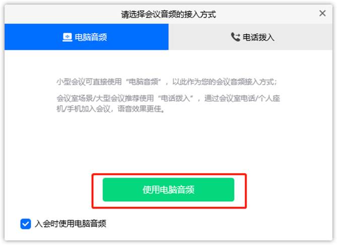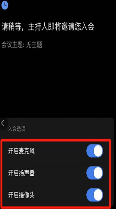 2.正式复试开始,考生主机位打开“企业微信”,接受复试邀请,进入复试会议。“入会选项”中开启麦克风、扬声器、摄像头。