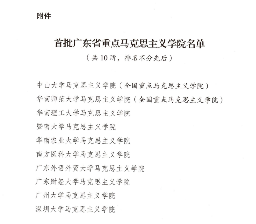 根据《中共广东省委宣传部 广东省教育厅关于公布首批广东省重点马克思主义学院名单的通知》,确定深圳大学马克思主义学院等10所高校马克思主义学院为广东省首批重点马克思主义学院,这是对近年来深圳大学马克思主义学院建设发展的极大肯定。