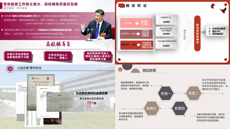为贯彻落实党中央、国务院关于高校毕业生就业工作的决策部署,落实《国务院关于印发“十四五”就业促进规划的通知》精神,加强学校生涯教育和就业指导,增强大学生生涯规划意识,指导学生及早做好就业准备,促进高校毕业生高质量充分就业,深圳大学马克思主义学院于近日成功举办了首届大学生职业规划大赛院赛,吸引了学院众多优秀的学子参与,展现了我院学生们出色的职业规划和生涯设计。