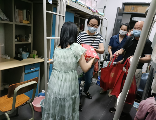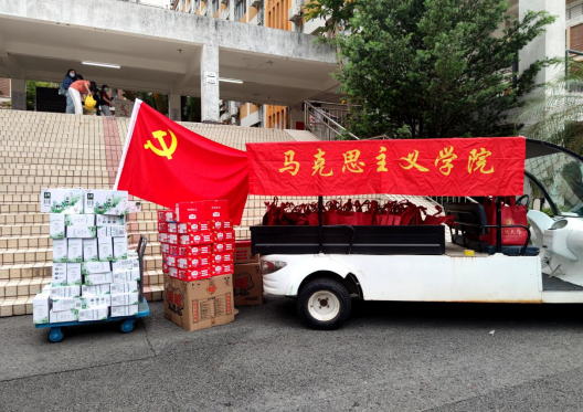 为贯彻执行学校疫情防控工作最新要求,深入了解学生新学期返校后的学习情况、精神面貌和生活状况,关心关注在宿舍居家健康监测学生的心理健康和个人需求,帮助学生尽快适应新学期和解决实际困难,2022年5月8日下午,马克思主义学院党委书记王红、院长傅鹤鸣、副院长孙婷婷、党委副书记陈一鸣等党员师生一行15人,携带大礼包慰问品,走访慰问了学院全体学生。