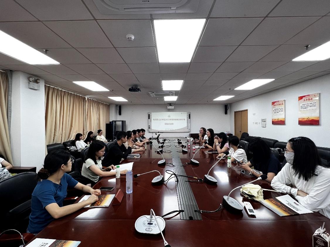 7月5日上午,马克思主义学院在文科楼1600欢迎2023年春季援疆支教学生载誉归来,并举办支教分享会,2022级和2023级部分学生共30余人参加此次活动。马克思主义学院党委副书记王萍出席并主持会议。 马克思主义学院杨天文、刘雅君、张昭东3位同学积极响应号召,不远万里赴新疆喀什支教,圆满完成了为期半年的支教任务,载誉归来。他们支教学校分别是新疆喀什市第三中学、喀什市第四中学。三位马院学子克服了学情不同、饮食差异以及气候迥异等困难,满怀热情地参与当地教育教学,并积极主动地为其他教师分担任务;在备课、教学及参加当地志愿者服务等工作中全情投入、一丝不苟。同学们热情饱满的工作状态,既赢得了支教学校领导老师们的一致好评,也充分展现了马院学子在祖国西部砥砺奋进、顽强拼搏,用真心教育,用真情奉献援疆支教工作的情怀。 王萍副书记对3位同学在援疆支教中的出色表现表示赞扬,对他们的付出和奉献表示了肯定。她表示,学院党委高度重视此项工作,积极动员了有理想、有追求、有情怀符合条件的优秀学子参与支教。马院学子也积极响应,踊跃报名。学院首批援疆支教的3位学子充分展示了当代青年大学生深厚的家国情怀、崇高的理想信念、吃苦耐劳的奉献精神,为学院带来了荣誉,为同学们树立了榜样。 她向与会的同学宣介援疆支教的基本情况。她勉励更多志在教育事业,心系祖国的学子为边疆教育发展、社会稳定、民族团结贡献更多自己的智慧和力量。她希望将支教项目作为马院的一个优良传统,薪火相传。 随后,大家一起观看援疆支教宣传片。