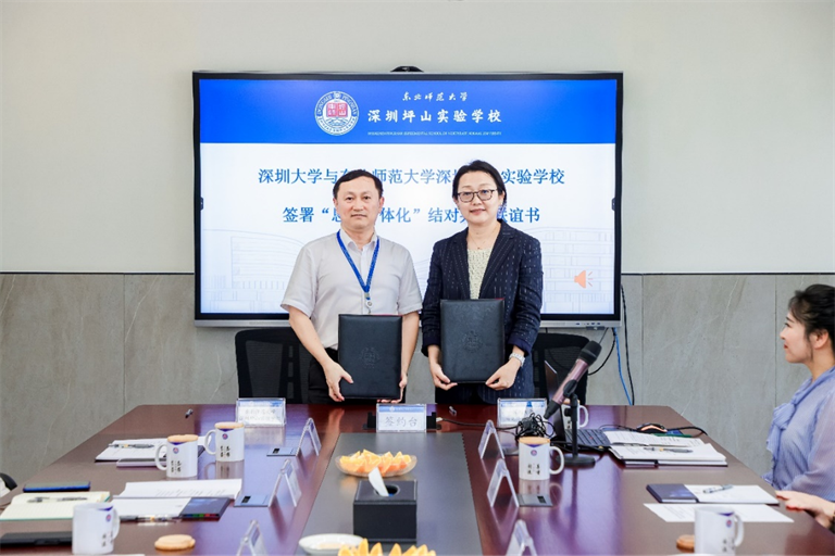 随后,王红、高俊明分别代表深圳大学马克思主义学院与东北师范大学坪山实验学校签署合作共建协议。