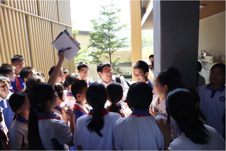 课后,同学们紧随李升涛老师走出课室继续热烈交流,并拿出自己的《道德与法治》课本让李老师留言,满是兴奋与期待。李老师一一为学生写下鼓励与暖心的话语,希望他们以后能够热爱祖国、追求卓越、不懈奋斗,书写属于自己的绚烂篇章。这堂思政课不仅在学生心中悄然种下了对中华文明深沉热爱的种子,也有效引导了学生们树立远大理想信念。