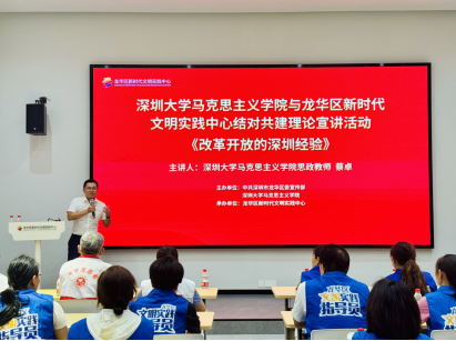 5月28日,蔡卓副教授在深圳市龙华区新时代文明实践中心作了题为《改革开放的深圳经验-经济特区是如何创建的》的宣讲报告。他详细回顾了党的十一届三中全会以来深圳经济特区的建立过程、发展成就,总结了深圳经济特区初期的重要体制改革举措和对外开放实践,并进一步探讨了改革开放40多年来深圳经济特区发展经验的时代意义。