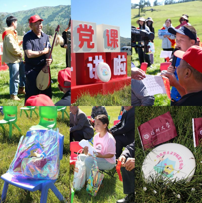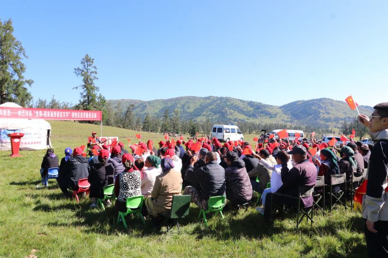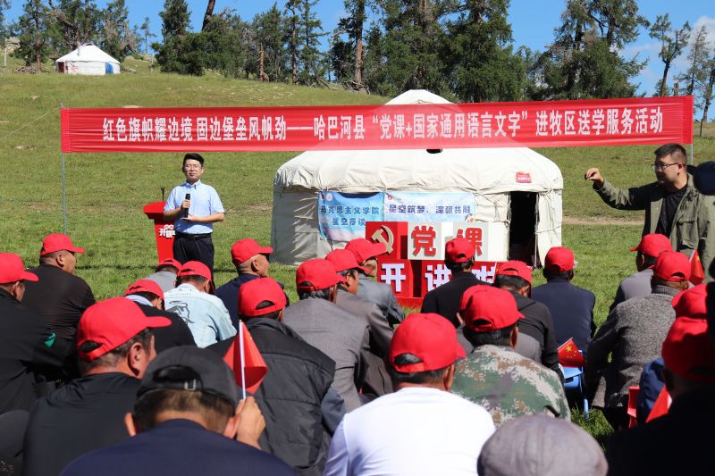 初夏时节,花开烂漫,成群的牛羊,点缀于草场之中,碧绿的草场,闪耀的却是金光,这里是7月的哈巴河县大萨孜夏牧场。为积极相应国家号召,深化民族团结进步教育,落实大学生暑期“三下乡”社会实践活动,带领学生切实走进农村、边远地区、少数民族地区,亲身体验民族风情,增进文化认同感与使命感。7月12日,深圳大学马克思主义学院党委联合哈巴河县委组织部及齐巴尔镇党委开展了“星空筑梦 深疆共融”之“星空夜谈”边境牧区送学专场活动。深圳大学马克思主义学院青年思政课教师罗晶、冯金宇,学生部民族办辅导员来再提,学院研究生辅导员边克冰和7名怀揣理想的研究生及当地临时党支部全体党员和牧民代表共计200余人参与活动。