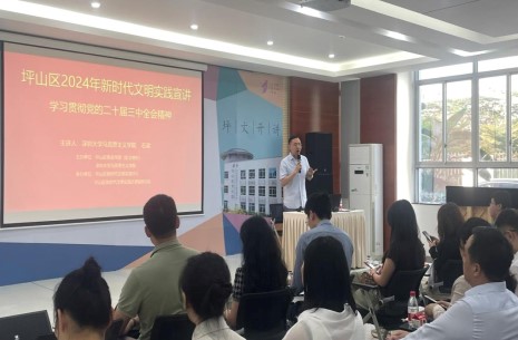 2024年以来,深圳大学马克思主义学院作为广东省首批重点马院之一,充分发挥理论研究和人才优势,以专家深厚的理论功底为基础,以群众所需所想为牵引,以长效队伍建设为保障,持续推动党的创新理论“飞入寻常百姓家”。近日,马克思主义学院党委集中组织第四批理论宣讲团成员深入深圳市、汕尾市基层持续宣讲党的二十届三中全会精神。本年度,深大马院开展理论宣讲活动上百场,实现了深圳市、汕尾市各区县全覆盖。