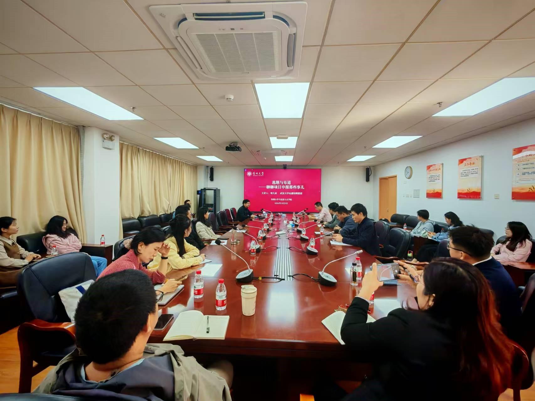 2024年12月3日上午,马克思主义学院2025年国家级项目申报动员暨国家社科基金、教育部社科项目申报辅导会在粤海校区汇文楼1600会议室开讲。武汉大学弘毅特聘教授项久雨教授为学院拟申报2025年国家级项目的青年教师带来了一场题为“选题与布道——聊聊项目申报那些事儿”的申报辅导会。本次辅导会由深圳大学马克思主义学院副院长张守奎教授主持,众多青年老师到场聆听。