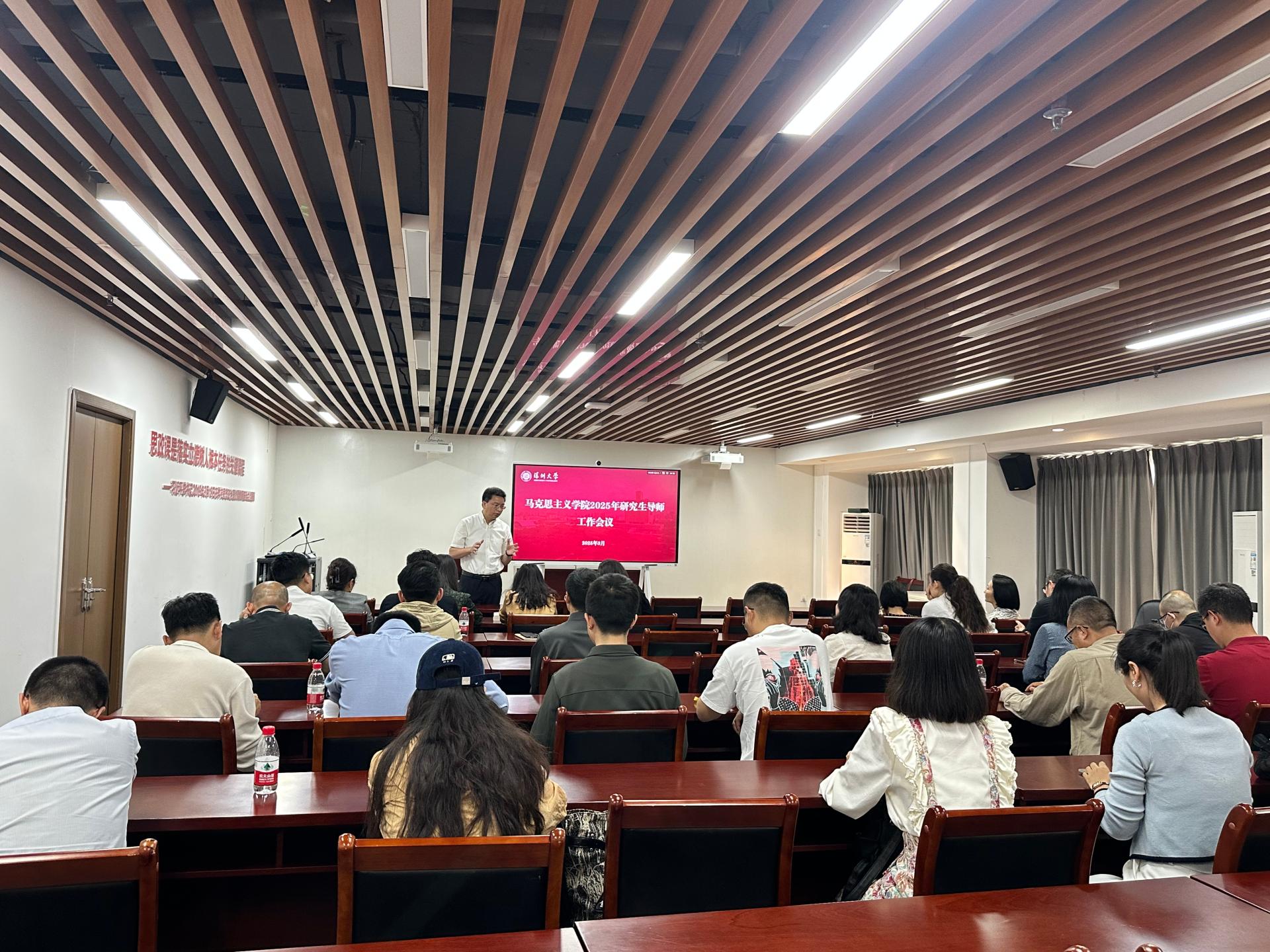 3月27日,在汇文楼2623会议室,马克思主义学院召开新学期研究生导师工作会议,学院全体研究生导师参会。会议聚焦“关心、关爱、帮扶学生”主题,强调导师作为研究生培养第一责任人的使命,要求全体教师从学业指导、心理健康、就业支持等方面全方位护航学生发展。