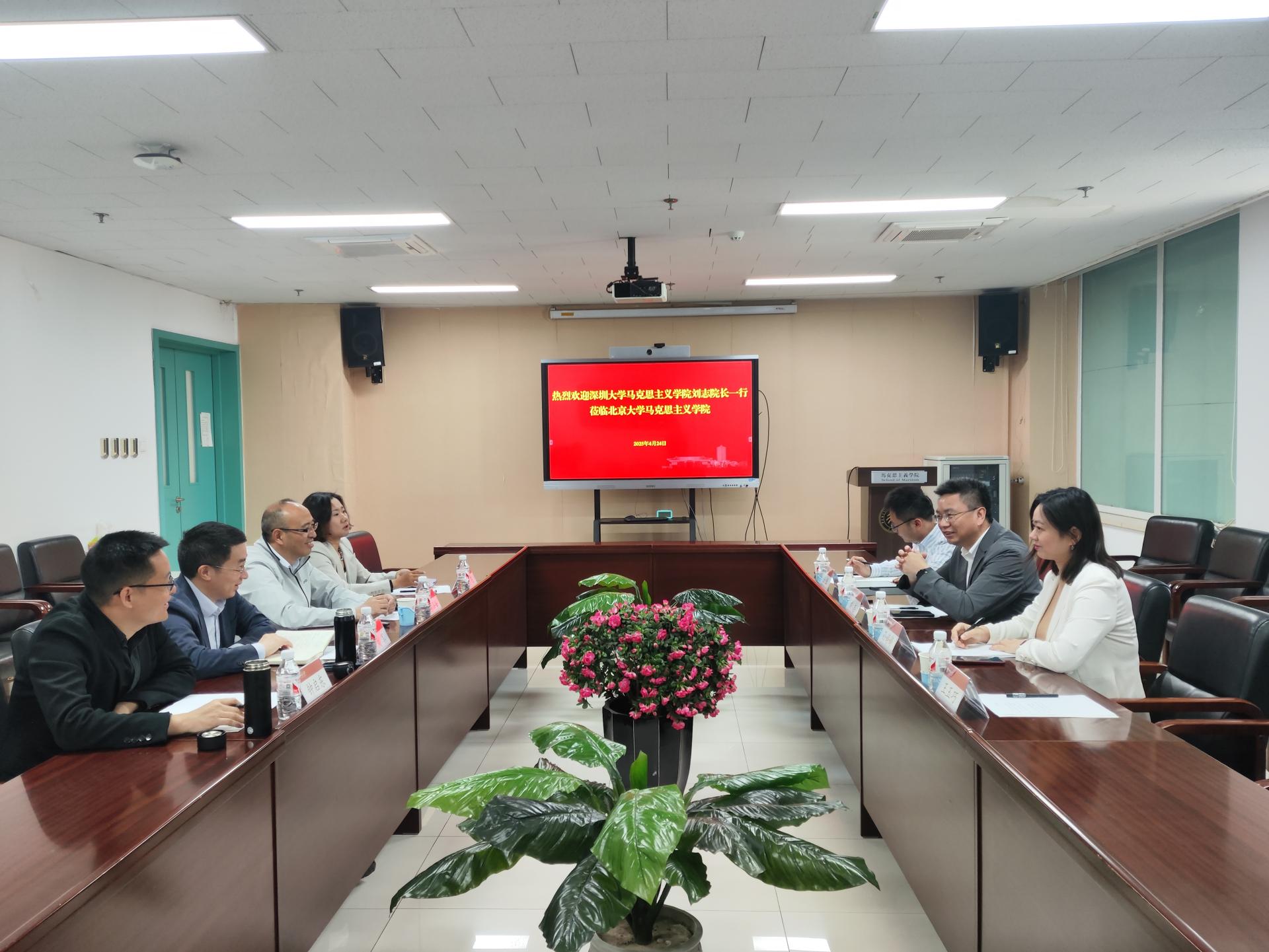 北京大学马克思主义学院院长仰海峰主持座谈会,总体介绍了北京大学马克思主义学院的历史沿革、思政课教学、队伍建设、学术研究、人才培养和党建工作等方面的经验。刘志院长介绍了近年来深圳大学马克思主义学院立足特区在人才培养、教学、科研等方面的主要做法。
