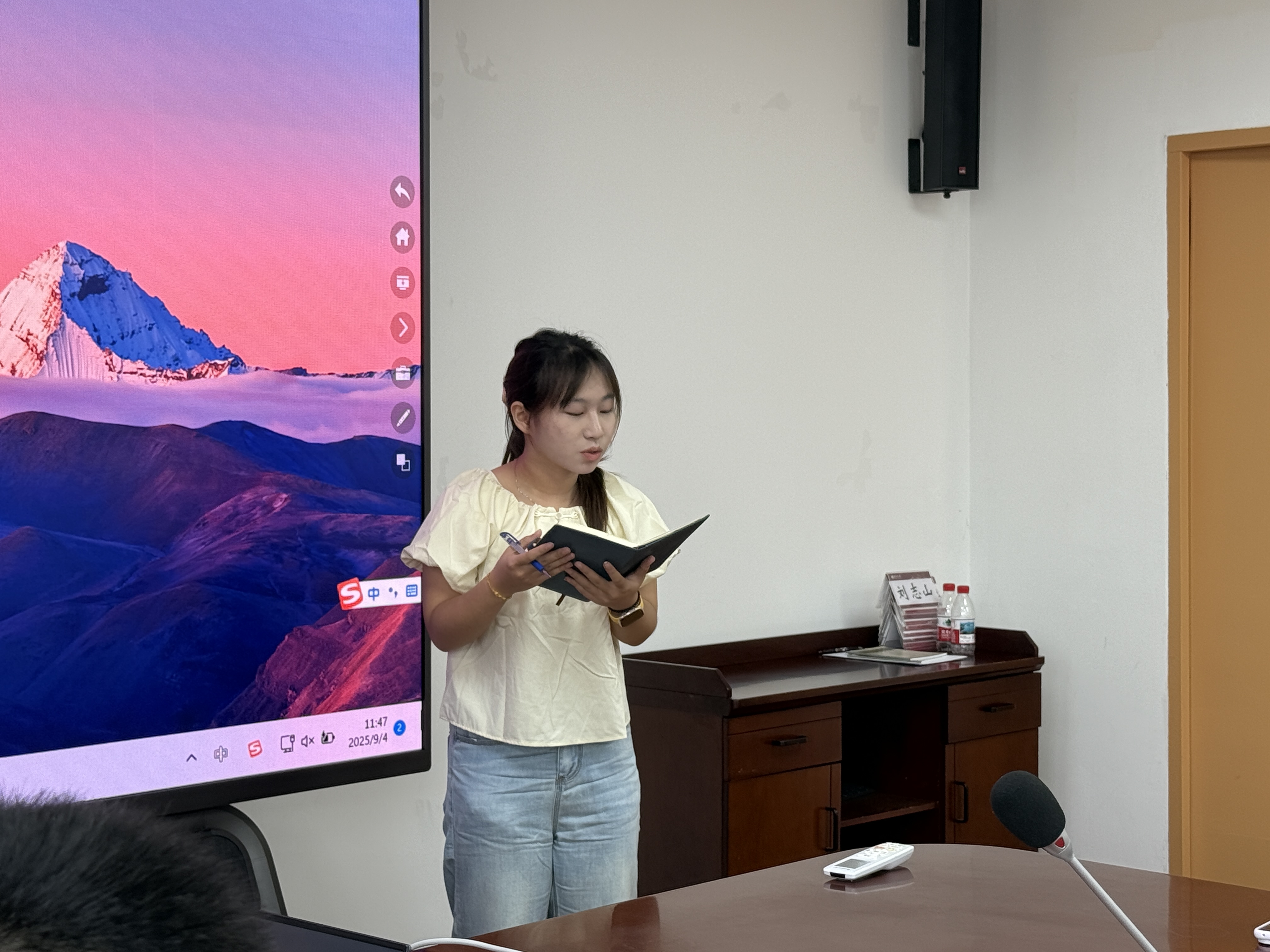 学院党委副书记王萍老师总结发言。她提出,马院学子是党的创新理论的学习研究者,也是党的创新理论阐释者和传播者,要深刻理解抗战精神的内涵,将其融入学术研究和学习中,用理论的力量去阐释和传播这种精神。她勉励同学们,新时代的“战斗”早已不止于战场,在芯片研发的“卡脖子”领域、在乡村振兴的田野上、在守护绿水青山的征程中、在三尺讲台上,同样需要青年学子以团结之力、创新之智扛起责任担当。同学们要以今日之震撼为起点,铭记历史、拥抱时代,在仰望“国之强盛”时,坚定“强国有我”的信念,刻苦锤炼本领,用行动践行“强国有我”的庄重承诺。
