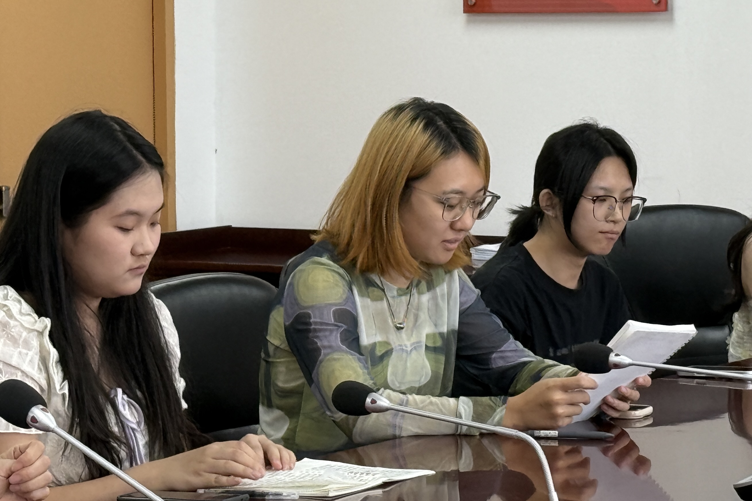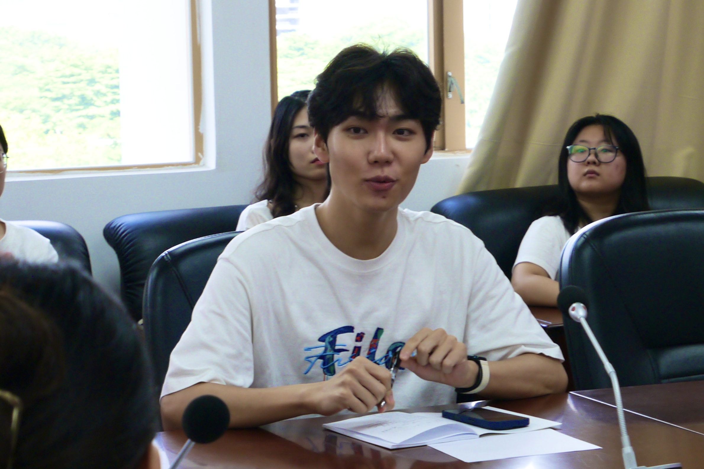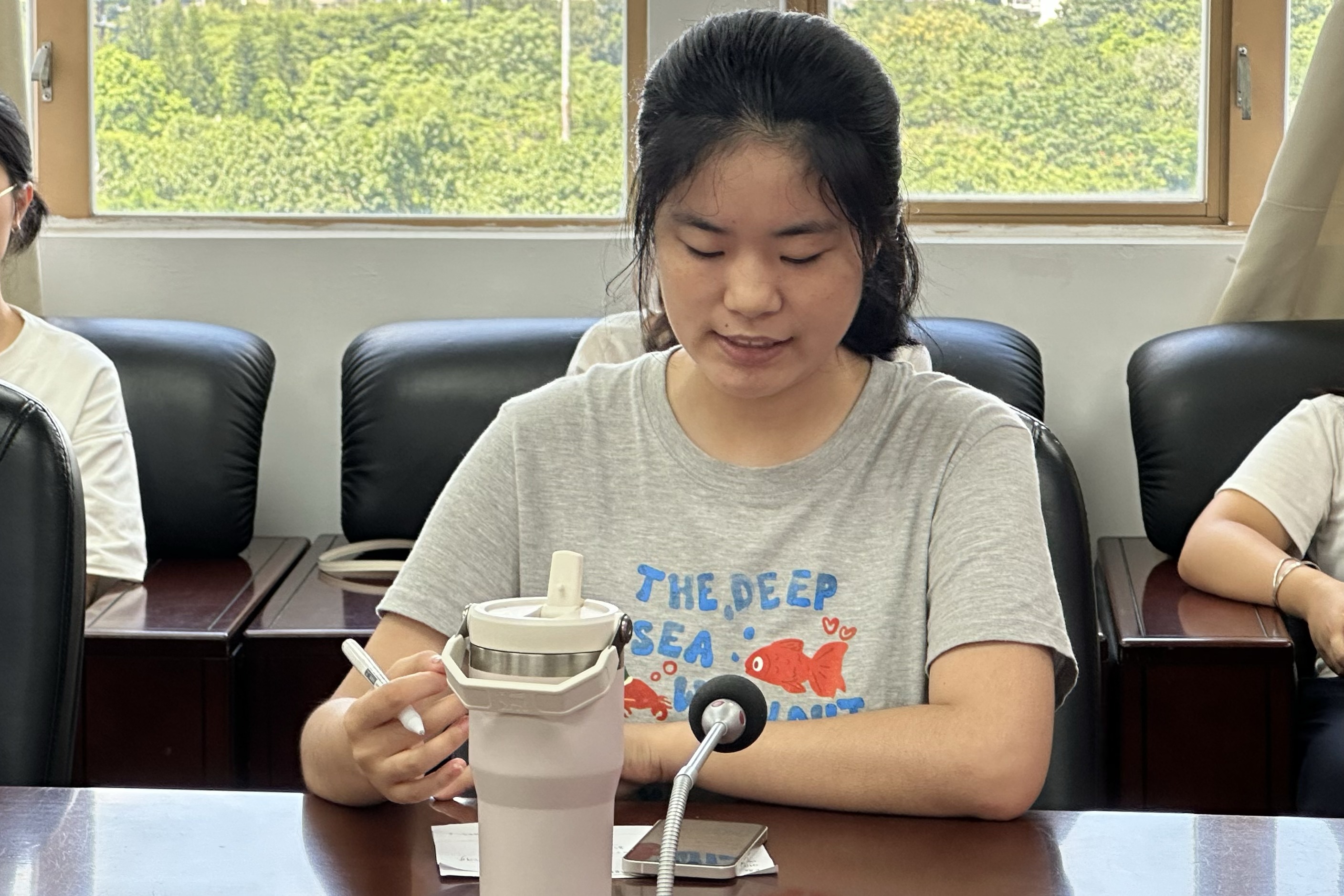 接着,参会的每位学生依次发言分享了观看阅兵仪式的体会与思考,真挚表达了青年学子强烈的家国情怀和责任担当。