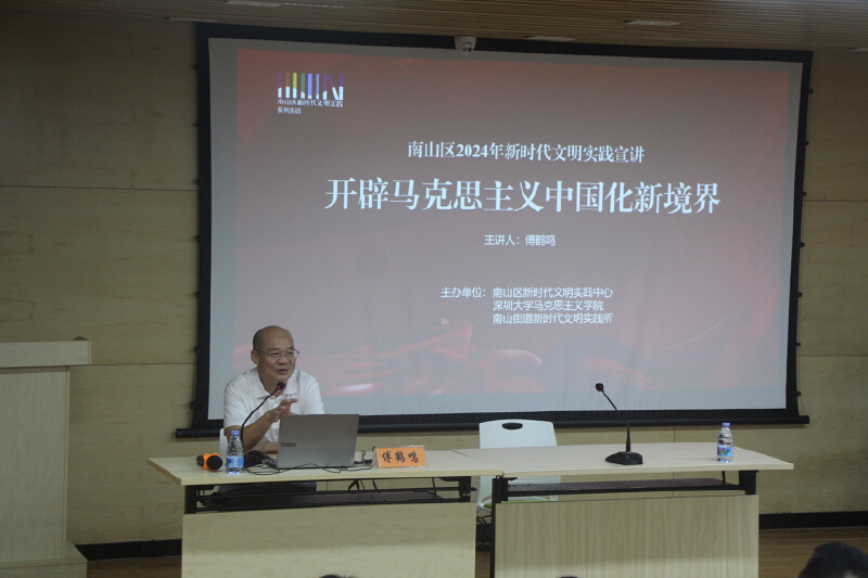 5月9日下午,南山区新时代文明实践中心、深圳大学马克思主义学院在南山街道新时代文明实践所举办了一场生动的新时代文明实践理论宣讲活动,邀请到深大马克思主义学院院长傅鹤鸣做《开辟马克思主义中国化新境界》专题辅导。