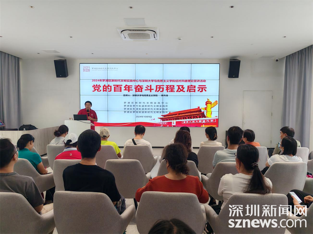 深圳新闻网2024年10月9日讯(记者 闫科企 通讯员 邓小如)今年初,广东省委宣传部组织首批10 所省重点马克思主义学院与全省新时代文明实践中心结对共建,大力宣传阐释党的创新理论,推动党的创新理论传入千家万户。10月9日,罗湖区新时代文明实践中心联合深圳大学马克思主义学院举办了“党的百年奋斗历程及启示”党史宣讲活动。本次宣讲活动吸引了包括党员、入党积极分子及社区群众等群体积极参与。