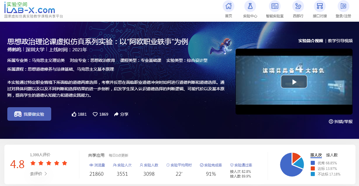 随着技术的发展,中心的教学手段也经历了信息化-网络化-智能化发展阶段。通过构建技术融合的学习环境,让教师能够施展高效的教学方法,让学习者能够获得适宜的个性化学习服务和美好的发展体验,从而培养具有良好的价值取向、较强的行动能力、较好的思维品质、较深的创造潜能的人才,这是智能化教育的最好体现。把实验教学引入思想政治理论课,使理论教学与实验教学相结合,以一种新的方式促进思政课更好地理论联系实际。根据不同实验内容的具体特点,同时考虑到实验不同的应用条件,教师可以有针对性地选择多人同时在线实验或示范性案例教学,丰富自身上课的形式。